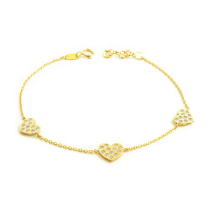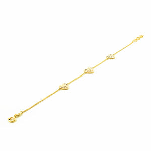Women's-Girls 9K Yellow Gold Bracelet with Shiny Zirconia Hearts, 18 cm