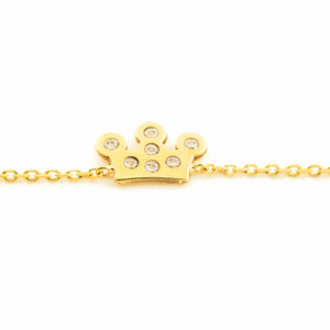 Women's-Girls Bracelet 9K Yellow Gold Crowns Zirconia Shine 18 cm