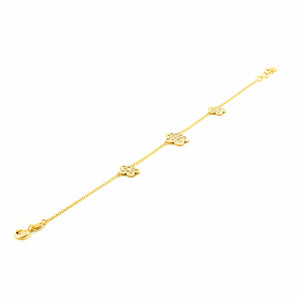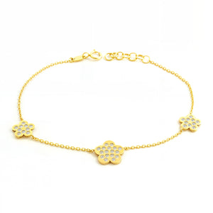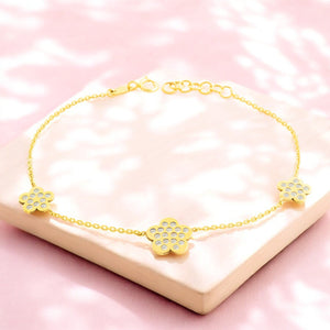 Women's-Girls 9K Yellow Gold Daisy Flower Zirconia Shine Bracelet 18 cm