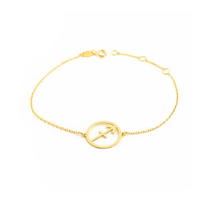 Woman-Girl 9K Yellow Gold Shiny Sagittarius Horoscope Bracelet 18 cm
