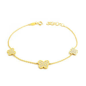 Women's-Girls 9K Yellow Gold Bracelet with Shiny Zirconia Butterflies, 18 cm