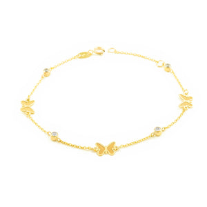 Woman-Girl 9K Yellow Gold Bracelet with Matte and Shiny Zirconia Butterflies 18 cm