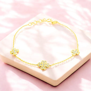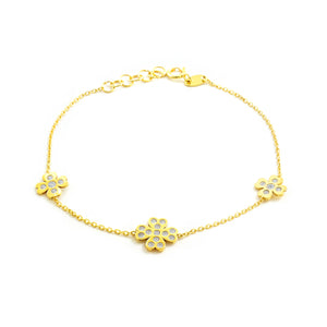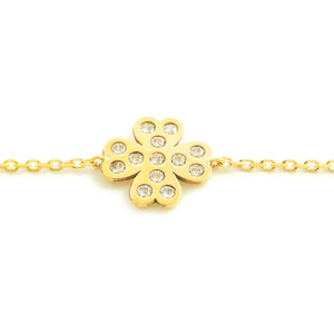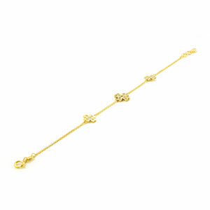 Women's-Girls 9K Yellow Gold Clover Zirconia Shine Bracelet 18 cm