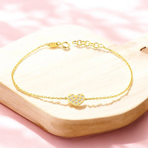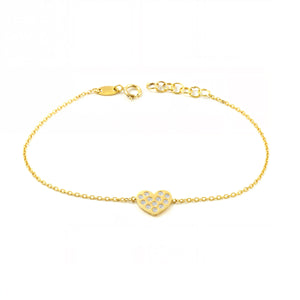 Women's 9K Yellow Gold Heart Zirconia Shine Bracelet 16 cm