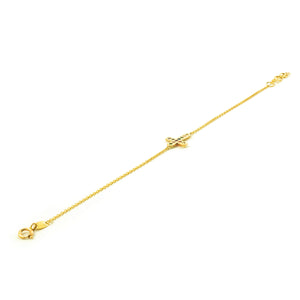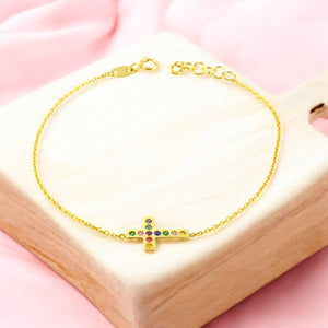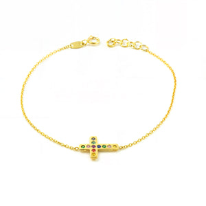 Women's 9K Yellow Gold Bracelet Horizontal Cross Zirconia Color Shine 17 cm