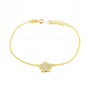 Women's 9K Yellow Gold Daisy Flower Bracelet with Shiny Zirconia, 17 cm