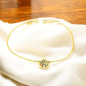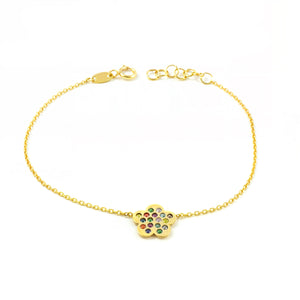 Women's 9K Yellow Gold Daisy Flower Bracelet with Shiny Zirconia, 17 cm