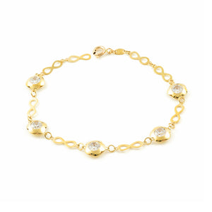 9K Yellow Gold Women's Bracelet Infinity Shiny Zirconia 20 cm
