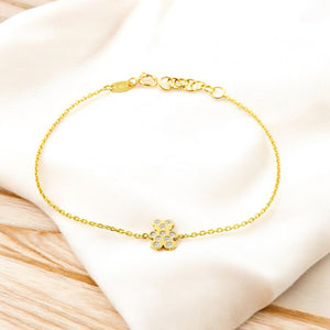 Women's 9K Yellow Gold Bear Bracelet with Shiny Zirconia, 16 cm