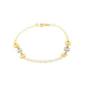 Women's Bracelet 18K Bicolor Gold Shiny Flowers 18 cm