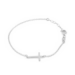 Women's Sterling Silver Horizontal Cross Shiny Bracelet