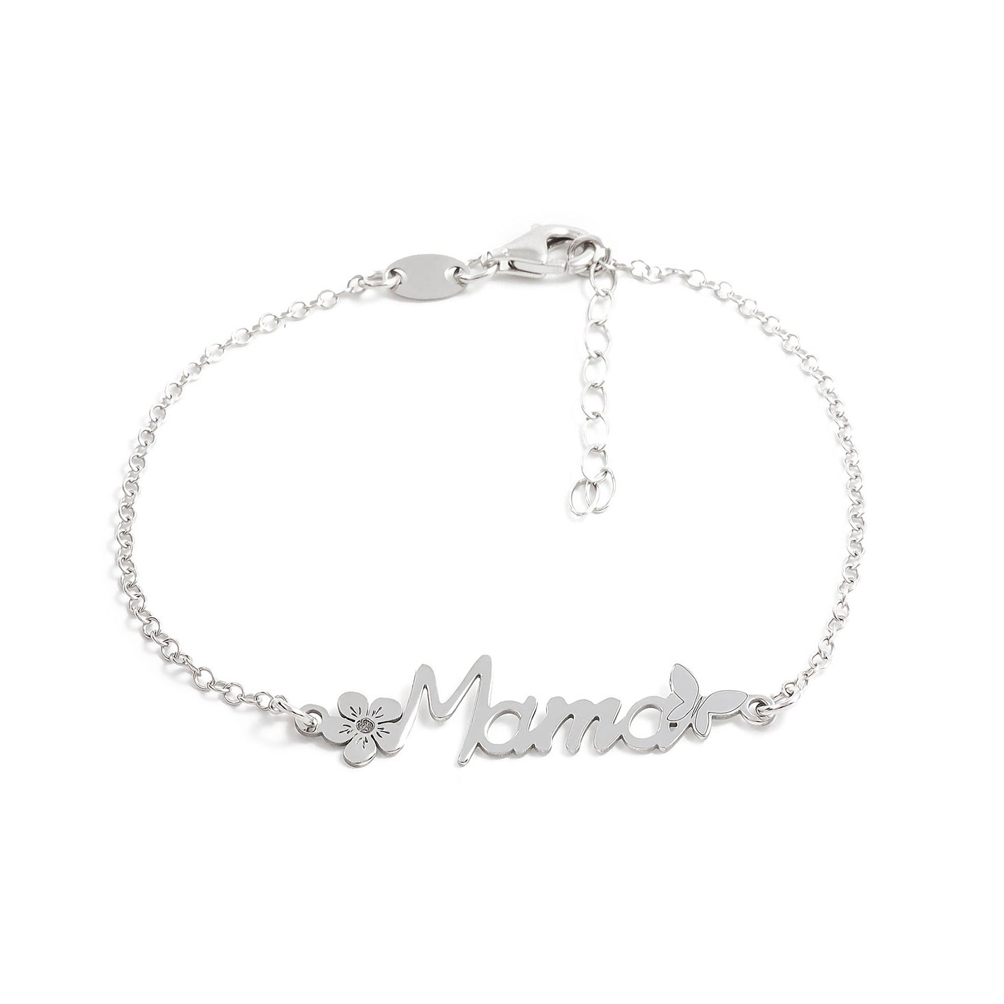 Women's Bracelet Sterling Silver Mom and Butterfly Shiny Zirconia