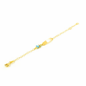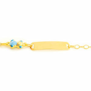 18K Yellow Gold Girl's Bracelet with Enamel and Shiny Blue Bear Bracelet, 14 cm