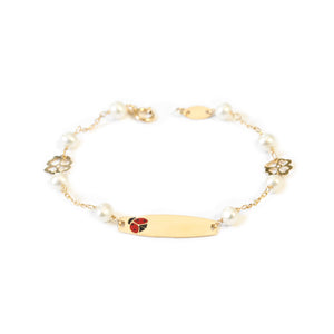 Girl's Bracelet 18K Yellow Gold Personalized Round Ladybug Slave 3.5 mm Shine 13 cm