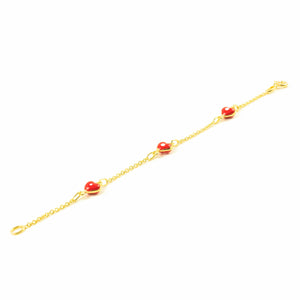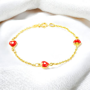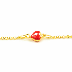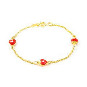 9K Yellow Gold Girl's Bracelet with Red-White Glossy Enamel Heart, 14 cm