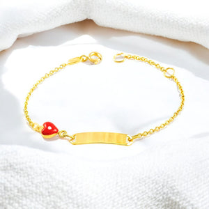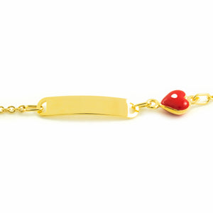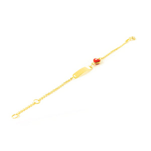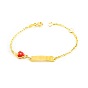 9K Yellow Gold Girl's Bracelet with Red-White Glossy Enamel Heart, 14 cm