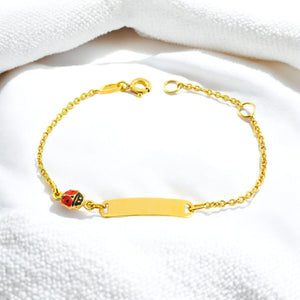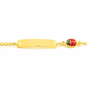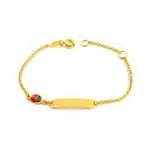 9K Yellow Gold Girl's Bracelet with Enamel, Ladybug, Red-Black, Glossy, 14 cm