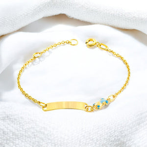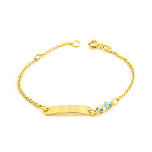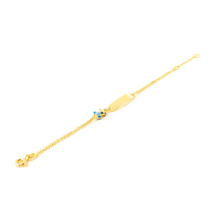 9K Yellow Gold Girl's Bracelet with Enamel and Shiny Blue Bear Bracelet, 14 cm