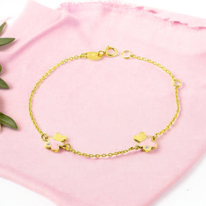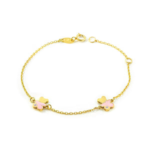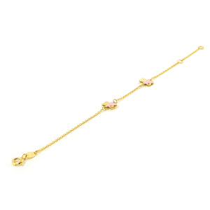 9K Yellow Gold Girl's Bracelet with Pink Shiny Zirconia and Enamel Bear, 14 cm