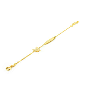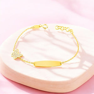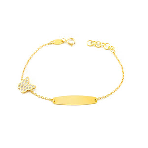 Personalized 9K Yellow Gold Girl's Bracelet, Butterfly, Shiny Zirconia, 14 cm