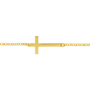 Sterling Silver Bracelet Golden Horizontal Cross Shiny