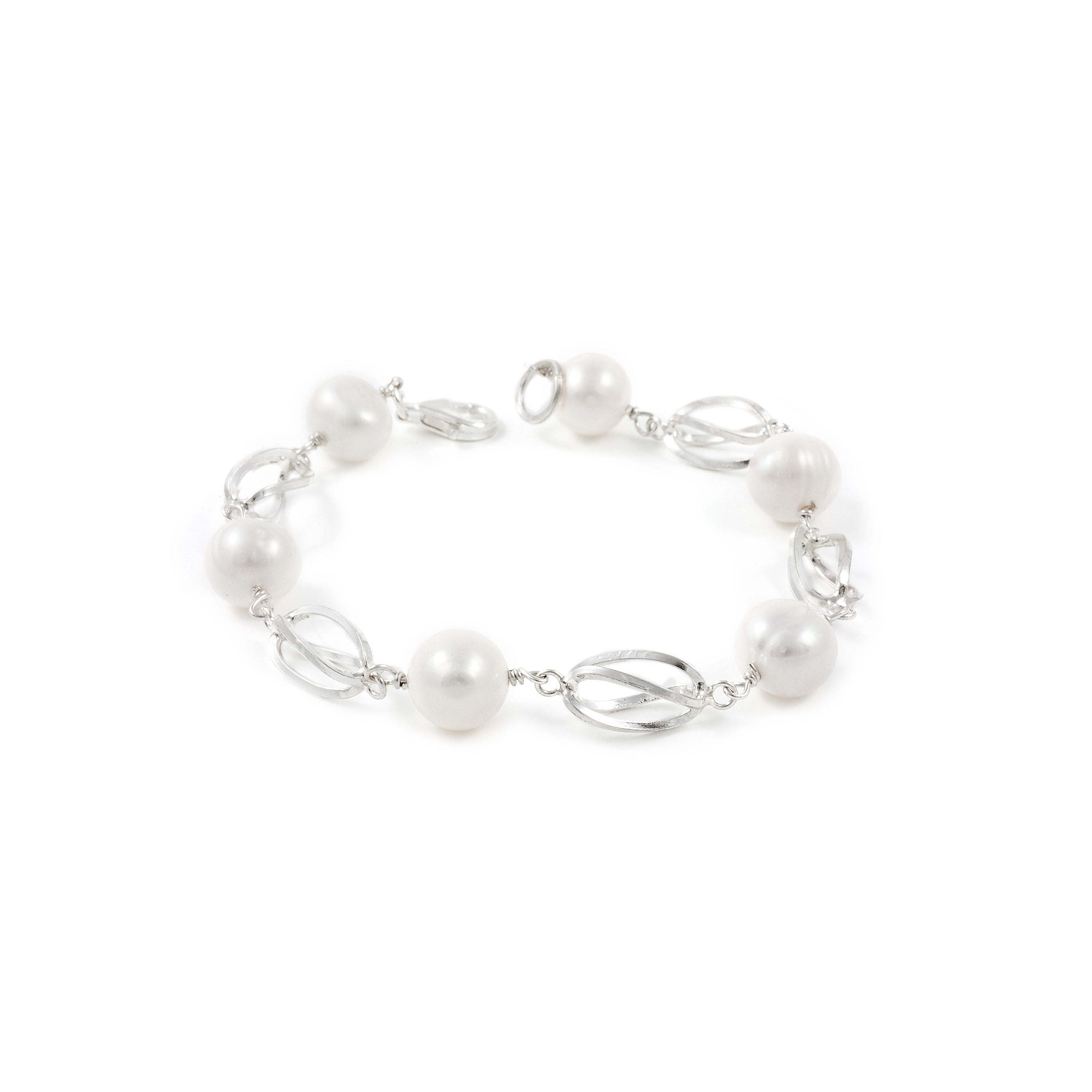 925 Sterling Silver Bracelet Round Pearl Basket 8 mm