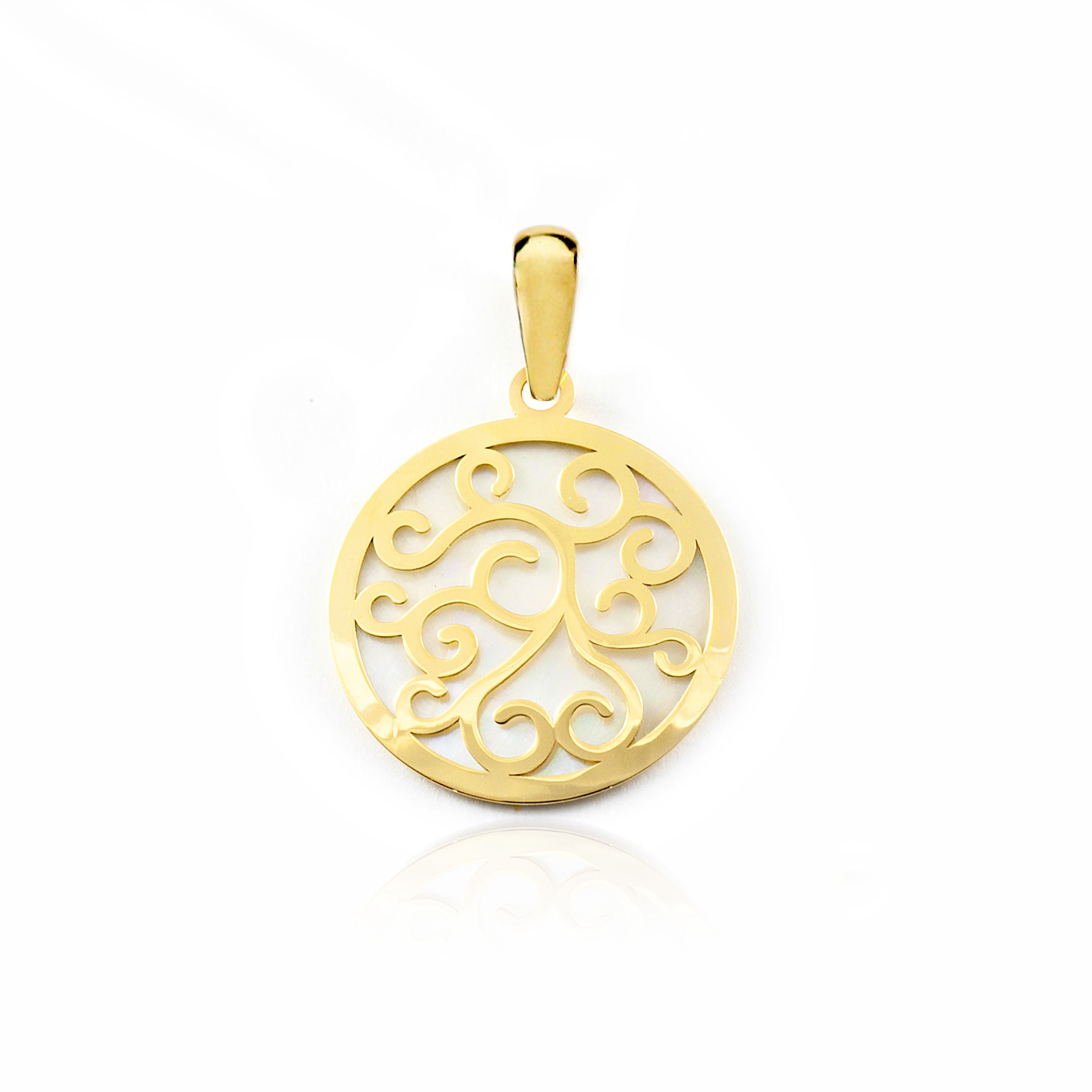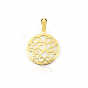Colgante Oro Amarillo 18K Nacar Redondo Espirales Brillo