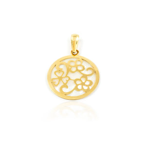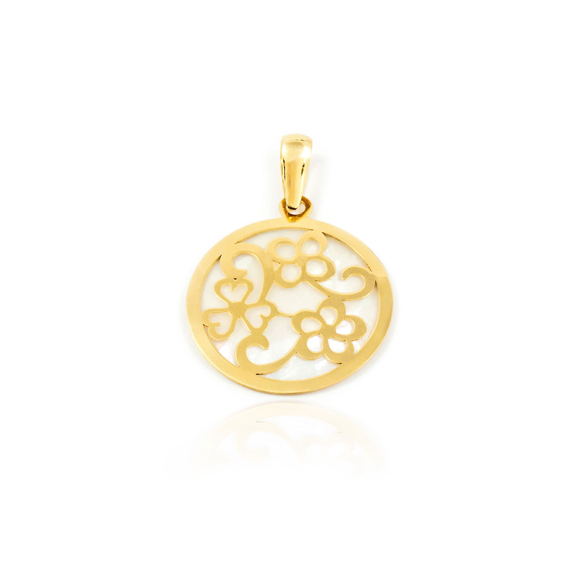 Colgante Oro Amarillo 18K Nacar Redondo Flores Brillo