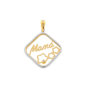 Colgante Oro Bicolor 18K Cuadrado Mama Flores Circonita Brillo
