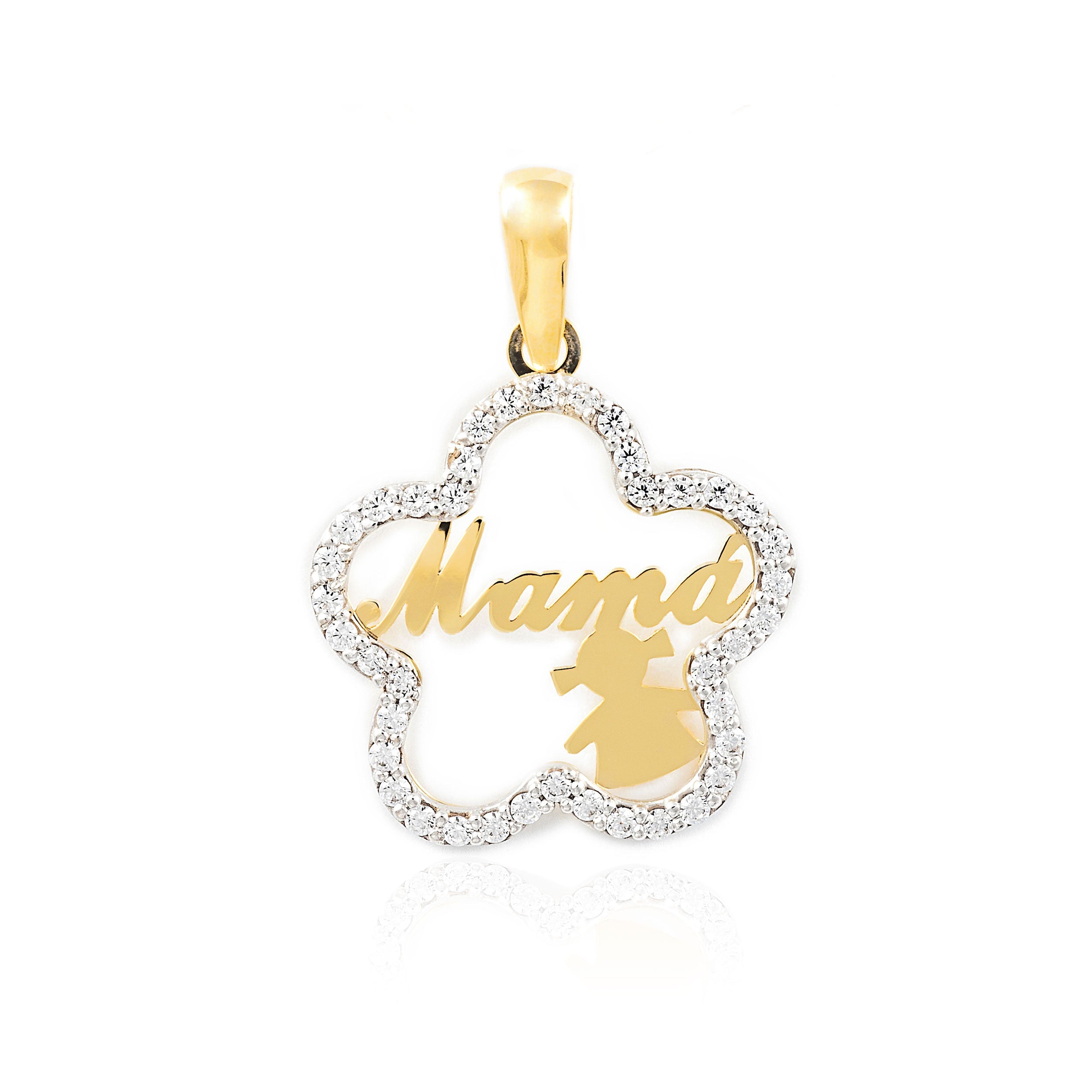 Colgante Oro Bicolor 18K Flor Mama y Niña Circonitas Brillo