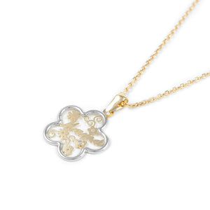 Colgante Oro Bicolor 18K Flores Mama Circonita Mate y Brillo