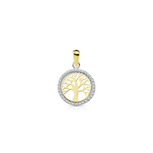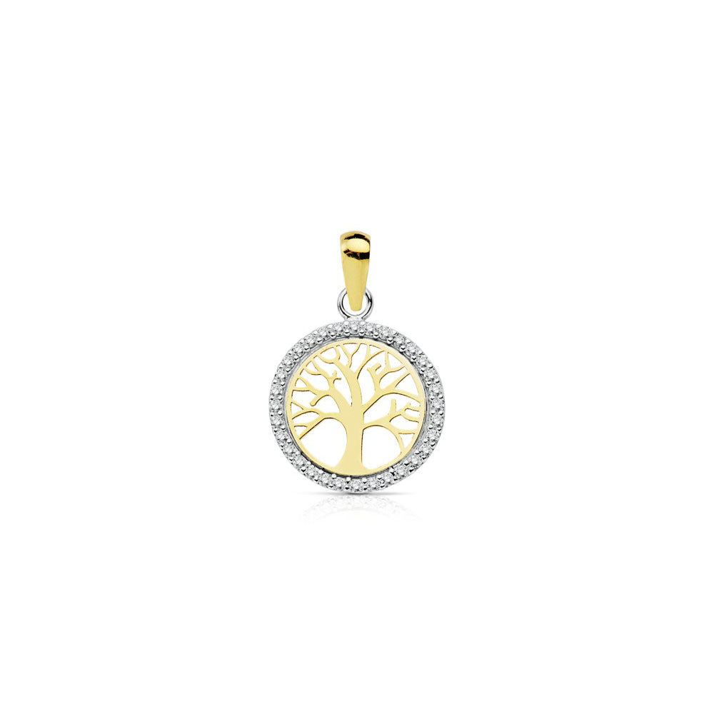 Colgante Oro Bicolor 18 Quilates (750/1000) Arbol de la vida Circonita