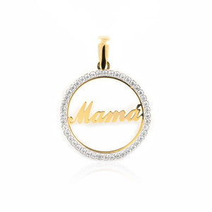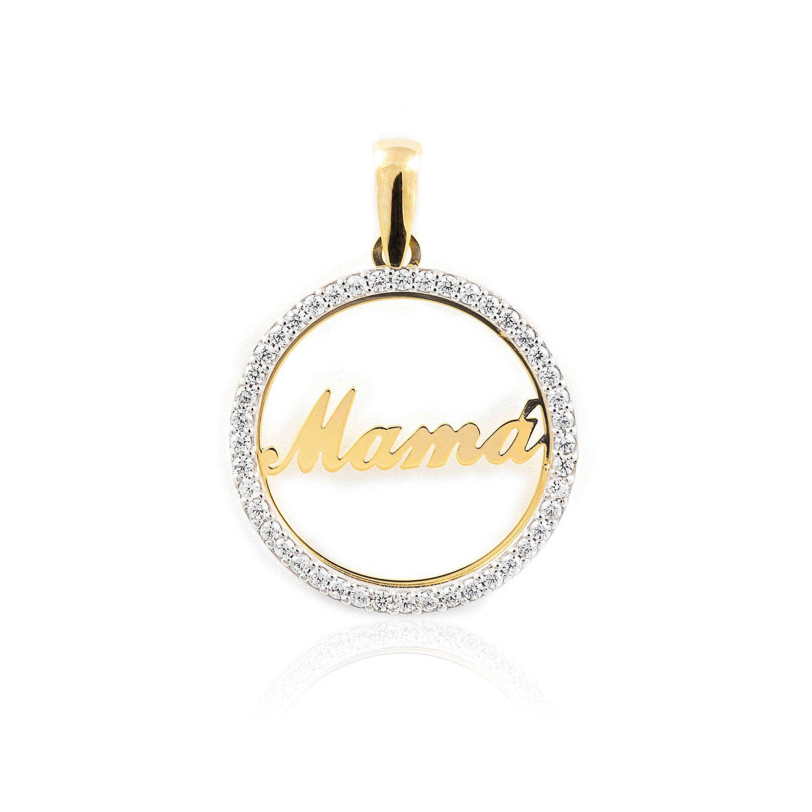 Colgante Oro Bicolor 18K Redondo Mama Circonitas Brillo