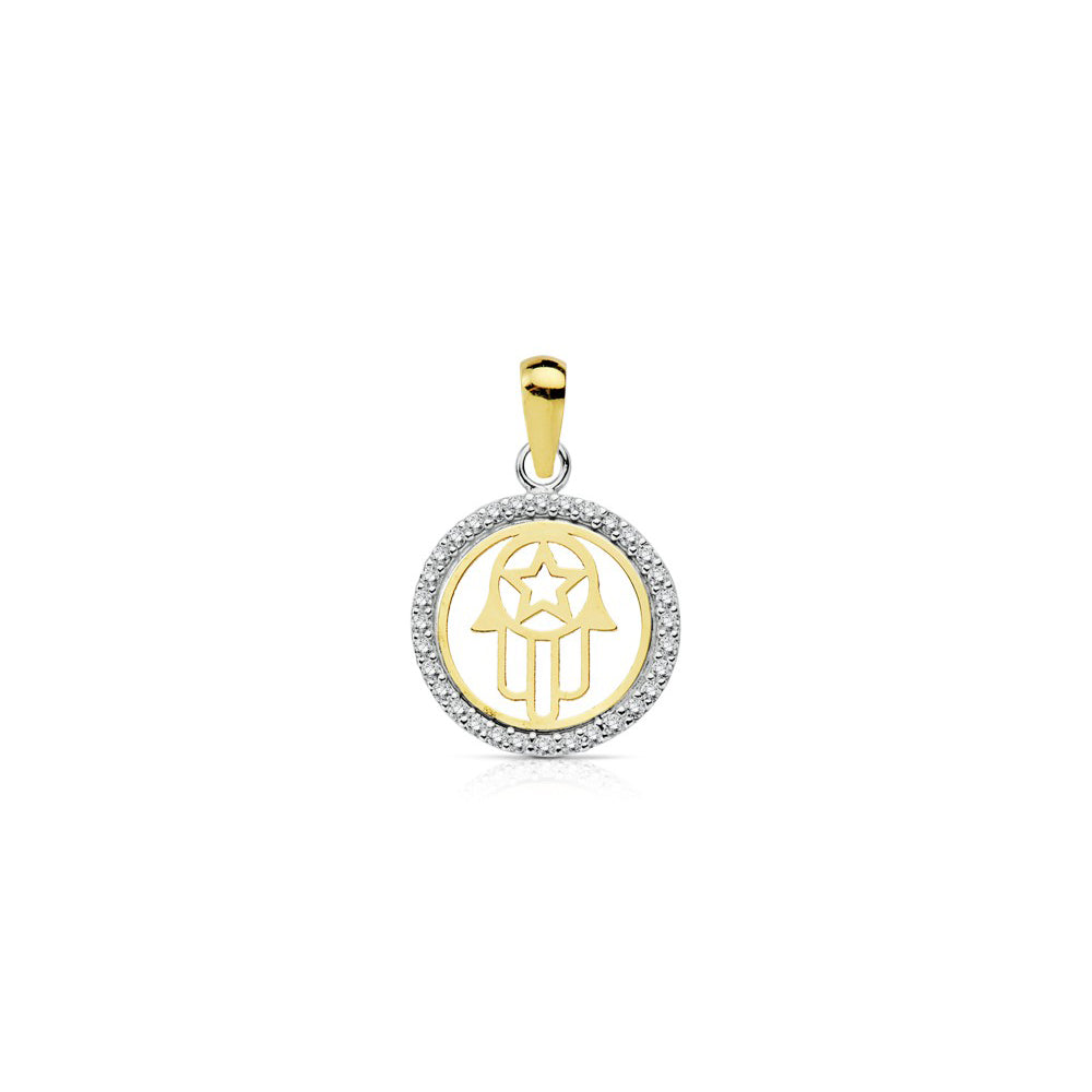Colgante Oro Bicolor 18K Redondo Mano Fatima Circonitas Brillo