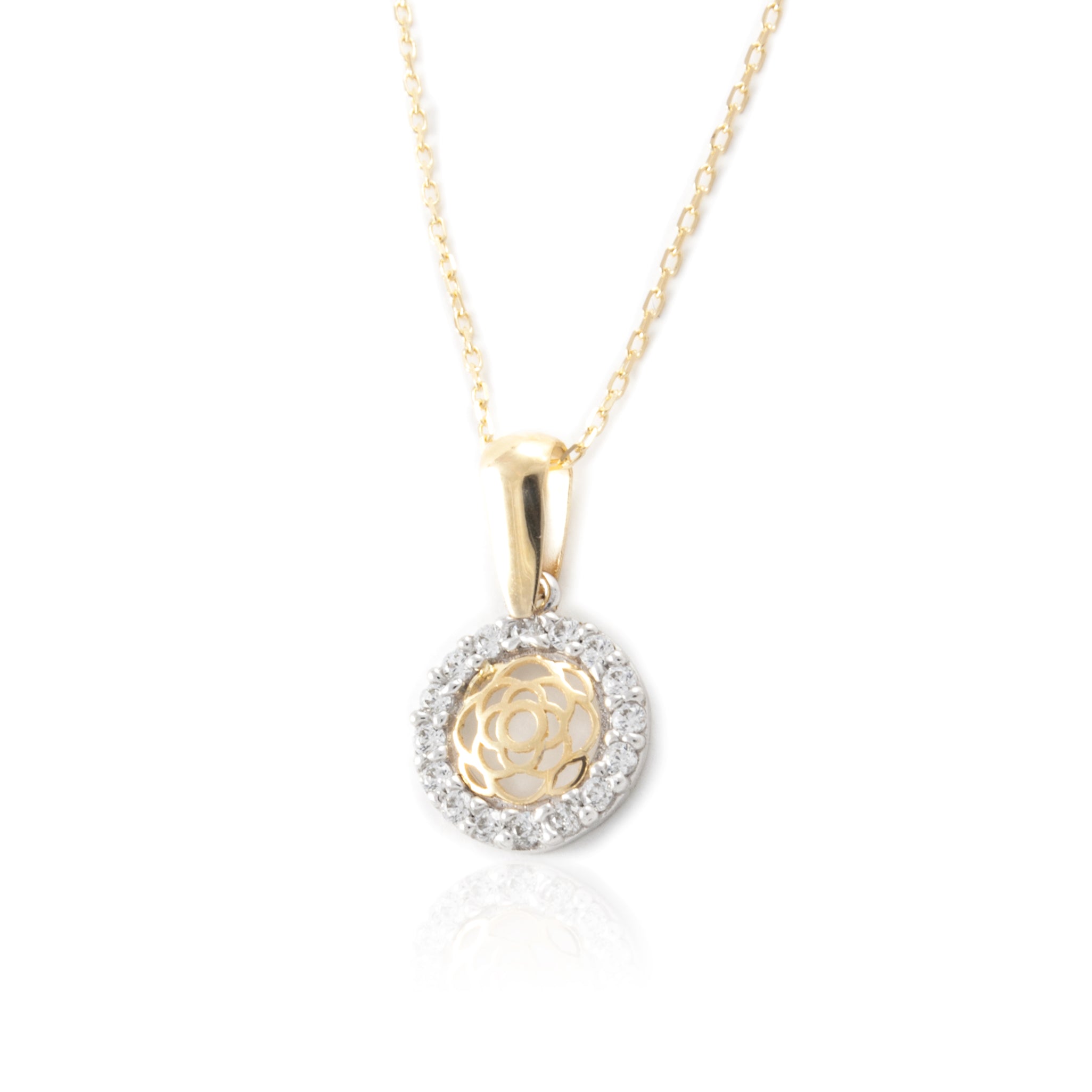 Colgante Oro Bicolor 9 Quilates (375/1000) Flor Circonita