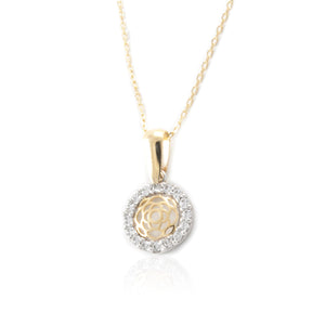 Colgante Oro Bicolor 9K Redondo Flor Circonitas Brillo