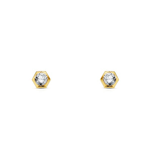 Pendientes Bebe-Niña Oro Amarillo 18K Chatón Hexagono Circonita Brillo