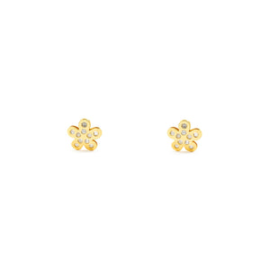 Pendientes Bebe-Niña Oro Amarillo 18K Flor Circonita Brillo