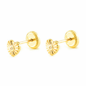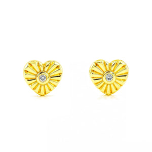 Pendientes Bebe-Niña Oro Amarillo 9K Corazón Circonita Brillo y Textura