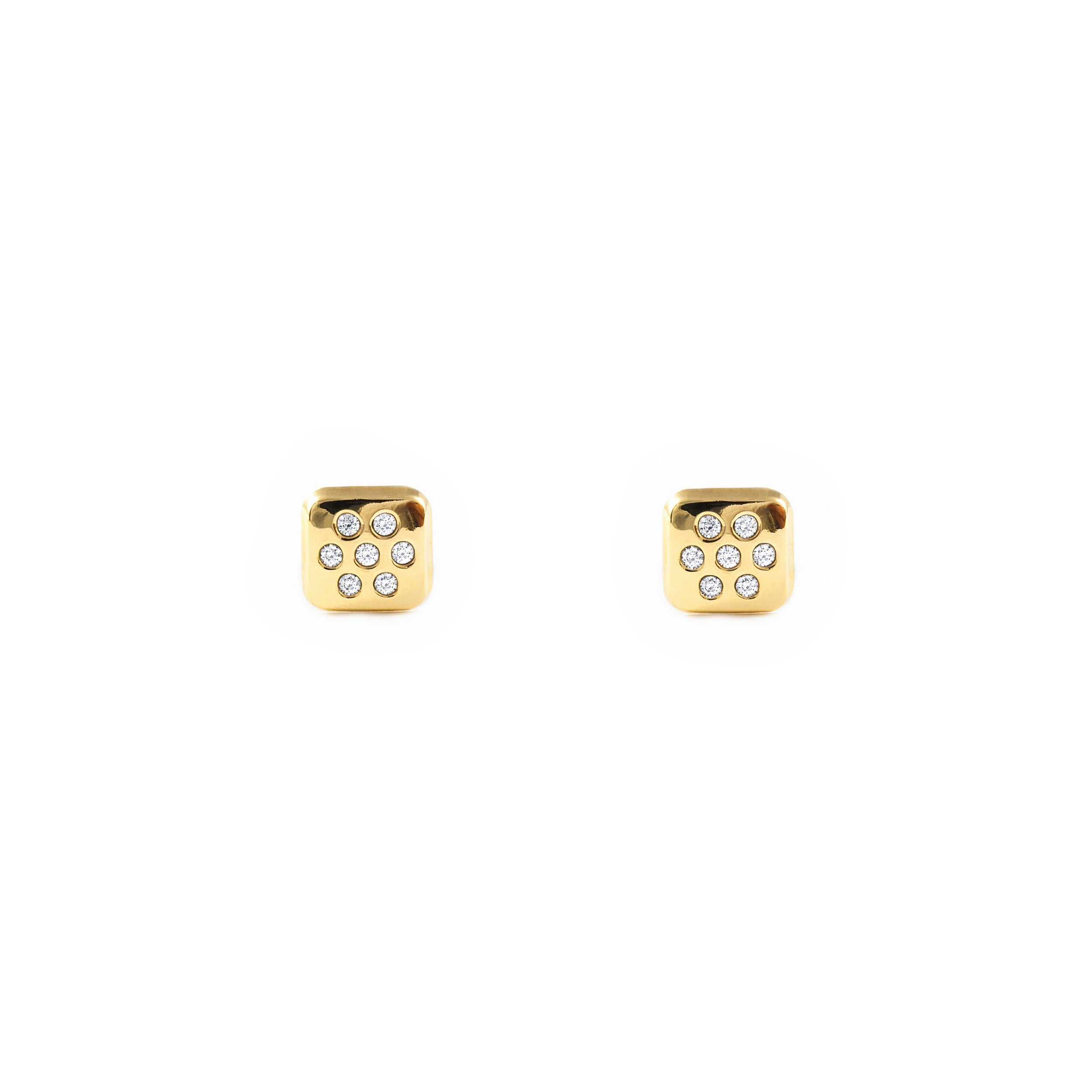 Pendientes Bebe-Niña Oro Amarillo 9K Cuadrado Circonitas Brillo