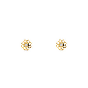 Pendientes Bebe-Niña Oro Amarillo 9K Flor Circonita Brillo