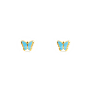 Pendientes Bebe-Niña Oro Amarillo 9K Mariposa Esmalte Azul Claro Brillo