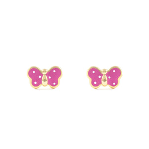 Pendientes Bebe-Niña Oro Amarillo 9K Mariposa Esmalte Rosa Intenso Brillo