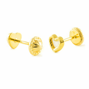 Pendientes Bebe-Niña Oro Amarillo 9K Nacar Corazón Tallados
