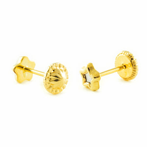 Pendientes Bebe-Niña Oro Amarillo 9K Nacar Estrella Tallados