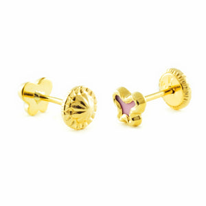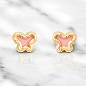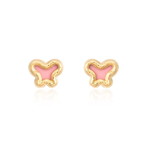 Pendientes Bebe-Niña Oro Amarillo 9K Nacar Mariposa Rosa Tallados