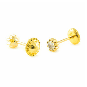 Pendientes Bebe-Niña Oro Amarillo 9K Redondo Circonita Brillo