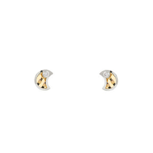 Pendientes Bebe-Niña Oro Bicolor 9K Luna Circonita Brillo