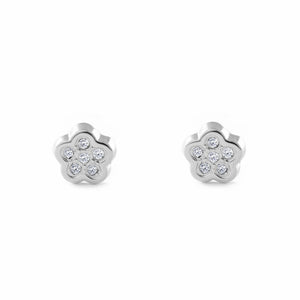 Pendientes Bebe-Niña Oro Blanco 9K Flor Circonitas Brillo