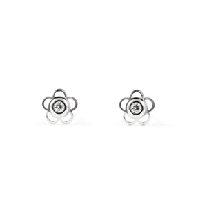 Pendientes Bebe/Niña Oro Blanco 9 Quilates (375/1000) Flor Circonita